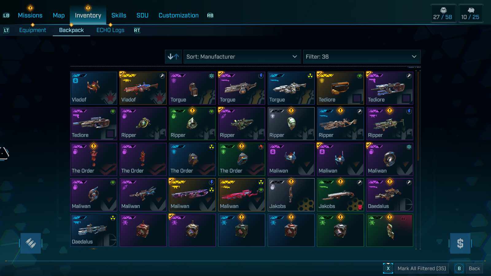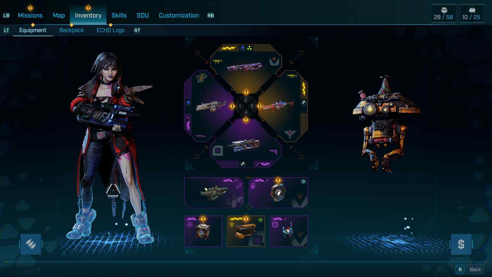 The user interface in Borderlands 4 is abysmal, especially if you are playing with a controller on PC. Cities on the map are overrun with icons. If you want to use fast travel to get there, it is nearly impossible to click on with the analog stick. Looking at your backpack in the game is equally frustrating. Items that are equipped are mixed in with everything else your character looted. Most games would have these at the top of the list or separated, but Borderlands 4 only adds a small yellow checkmark to them, which is difficult to notice on an orange gun, especially if you are colorblind.