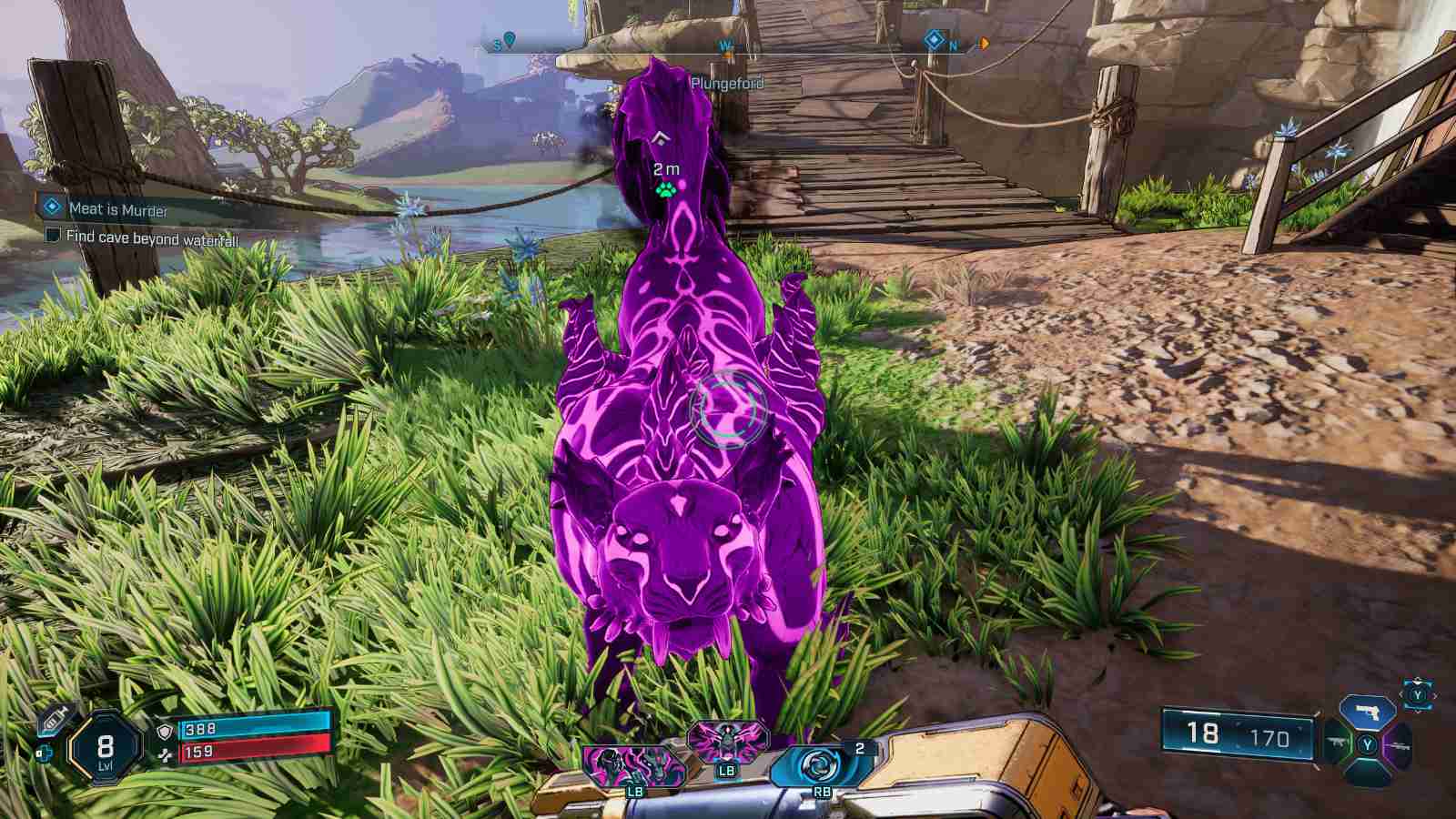 Playing Vex in this configuration had me swapping weapons frequently to utilize different elemental types against enemies. Trouble was fun, when he worked correctly. Oftentimes in battle, Trouble was nowhere to be seen. My companion would either be walking around behind me until I used his special ability to pounce on an opponent, or he would be a star floating in the sky for some reason. When he would fight alongside Vex, they were a lot of fun to use.
