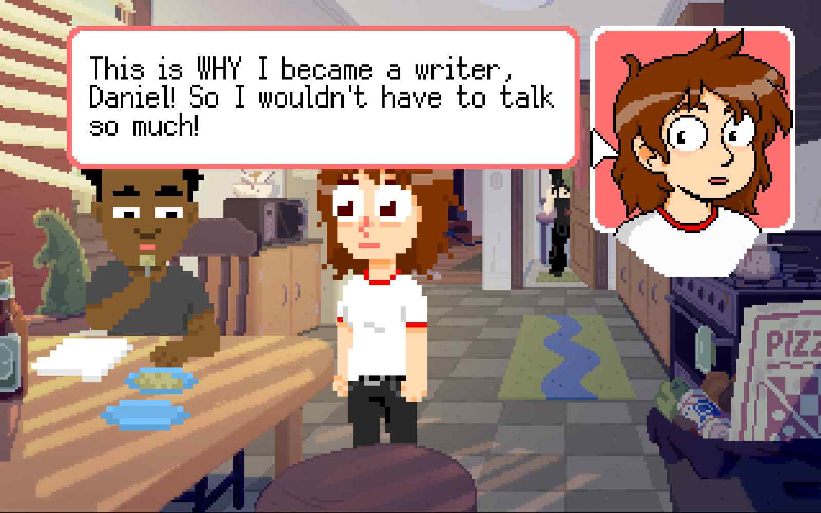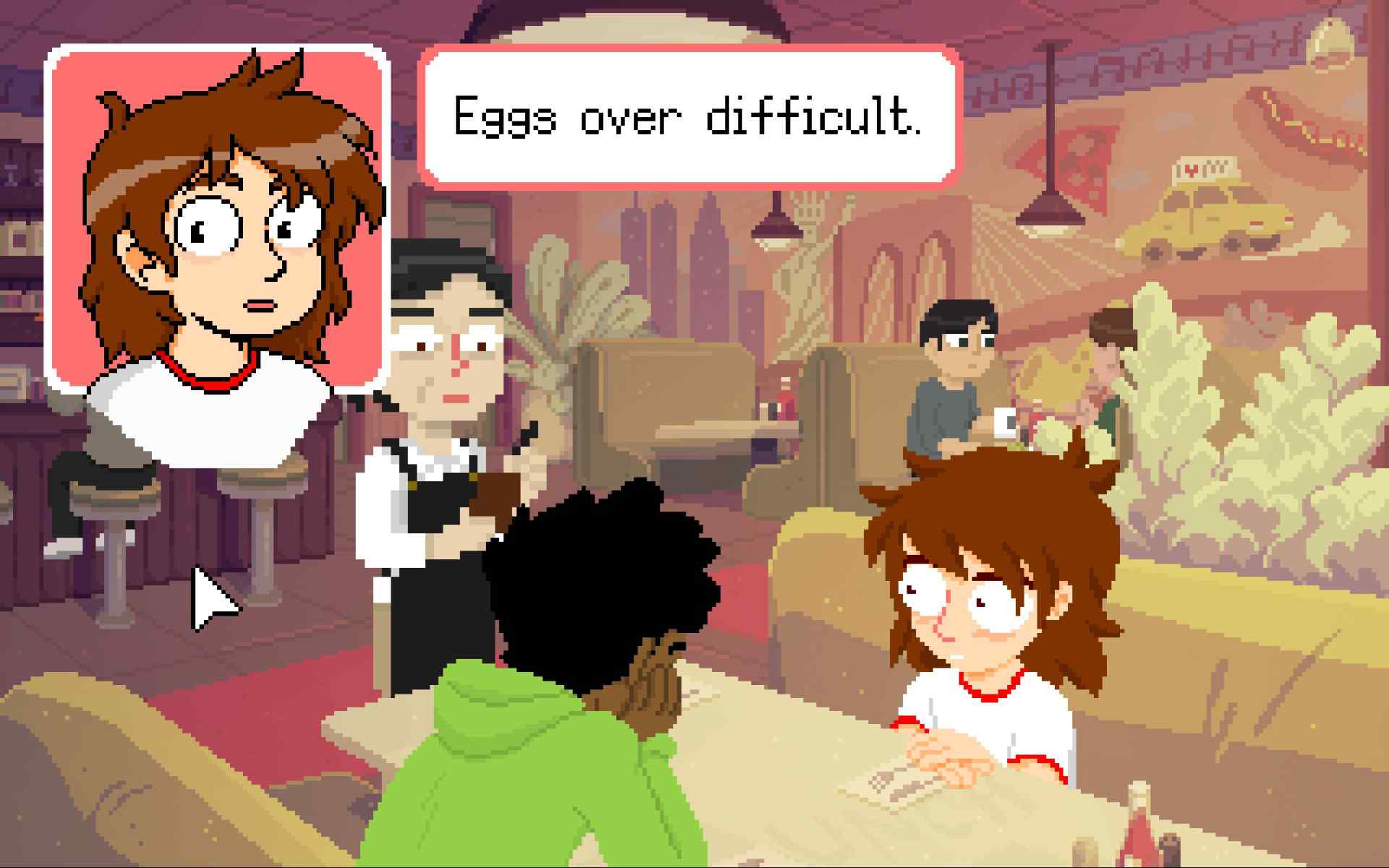 The City is the place where Mara desires to live, but she is unable to afford the rent. The City seems like it is based on New York, and includes all its adversities and adventures available in a major metropolitan area. Mara will often crash on the couch at Daniel’s place, where he and his other two roommates seemingly don’t mind. Occasionally she will take the train ride home to her mother’s house so as not to aggravate Daniel or his roommates.